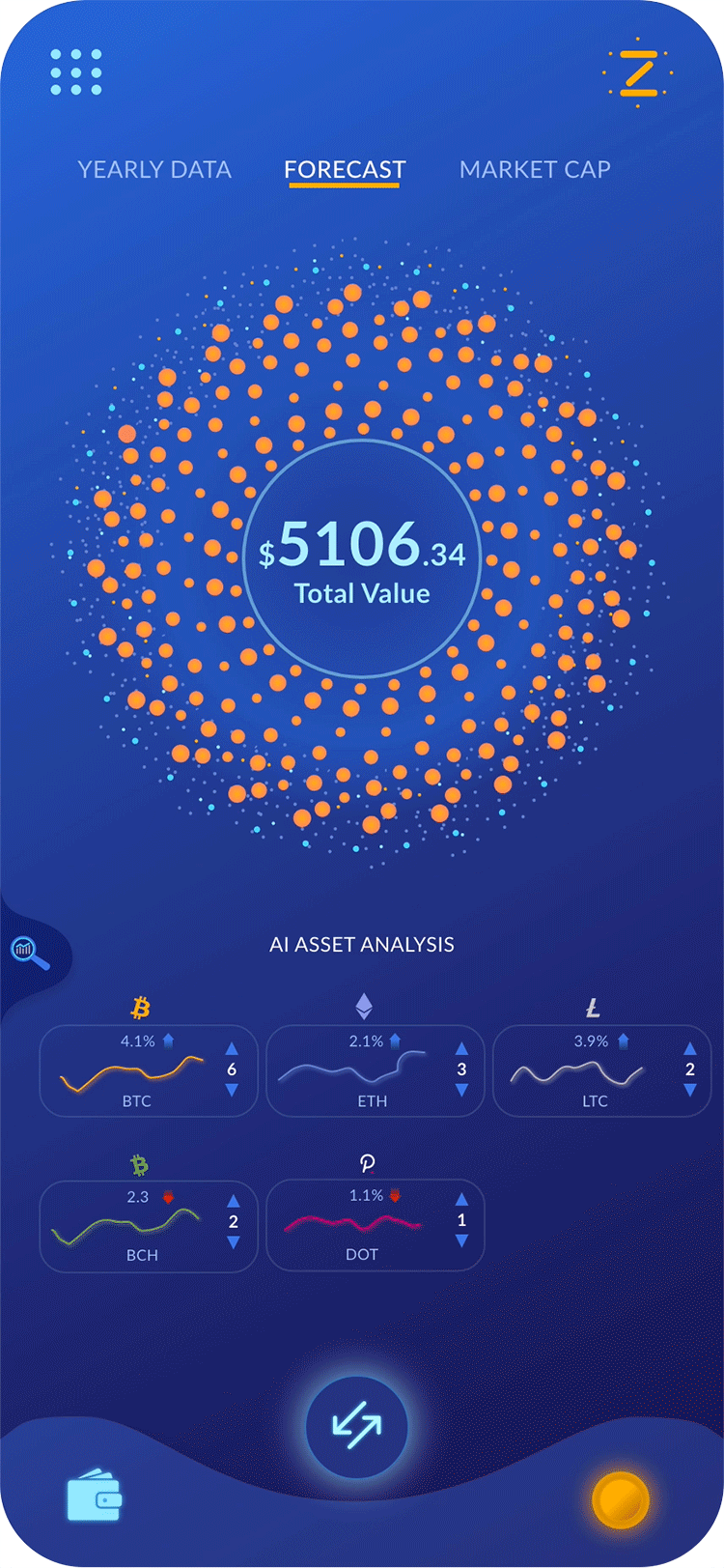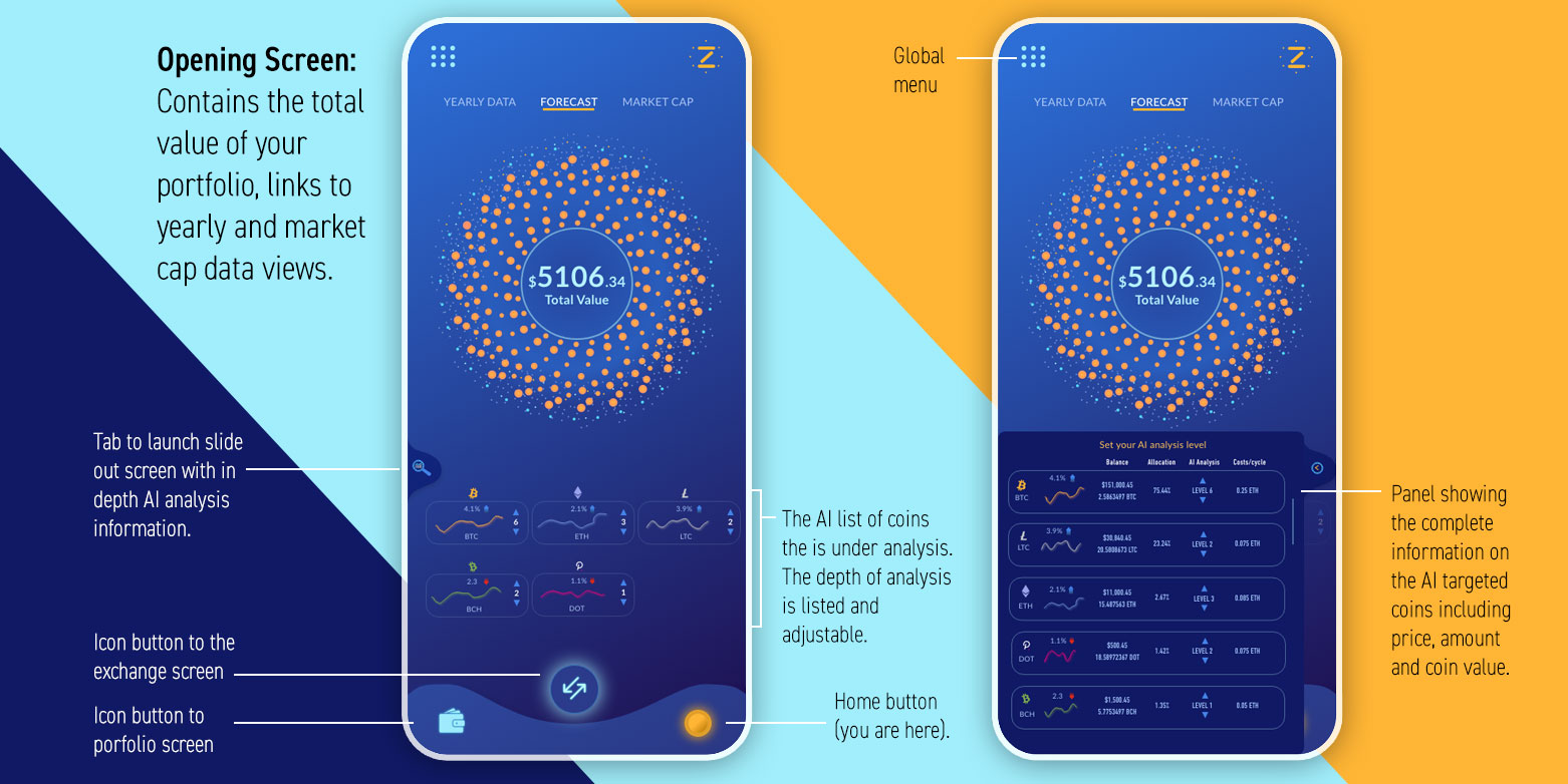 The Zodiak AI Algorithm. The AI algorithm is adjustable. By setting the level of the AI research algorithm, a user can control the depth of connections a designated coin has that could contribute to a price change. There are 10 levels with sub increments allowed. The deeper the setting, the more connections are analysed and the longer the response time to see a score. There is also a small crypto cost built into the request for a deeper dive of the AI.